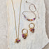 Dieses Set verbindet Kreolen, Armband und Kette mit kleinen Anhängern aus bunten Natursteinperlen und einer feinen Nussperle. Die warmen Holz- und Steinfarben erinnern an Sommer, Leichtigkeit und kleine Farbtupfer in der Natur.